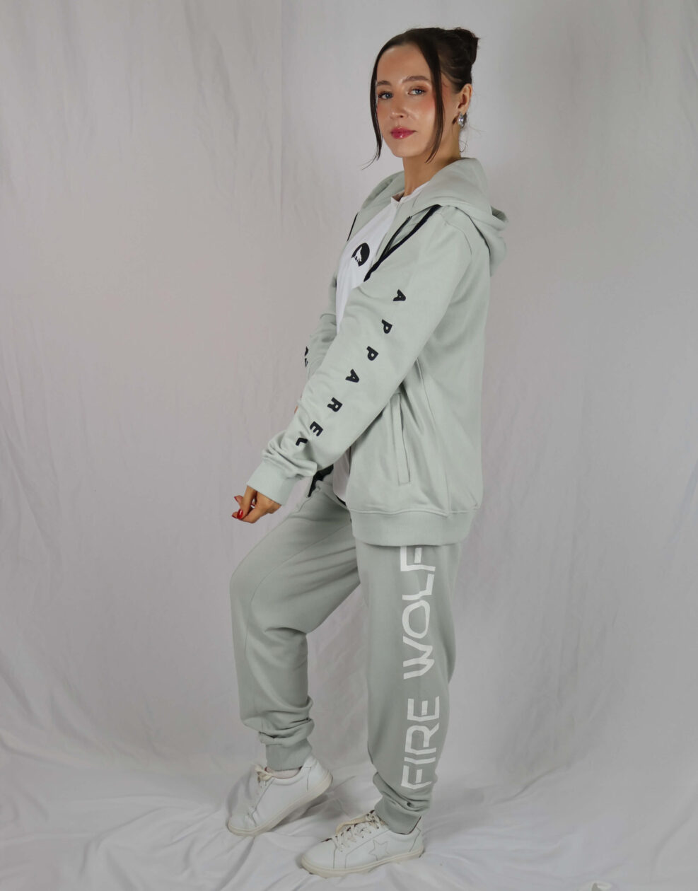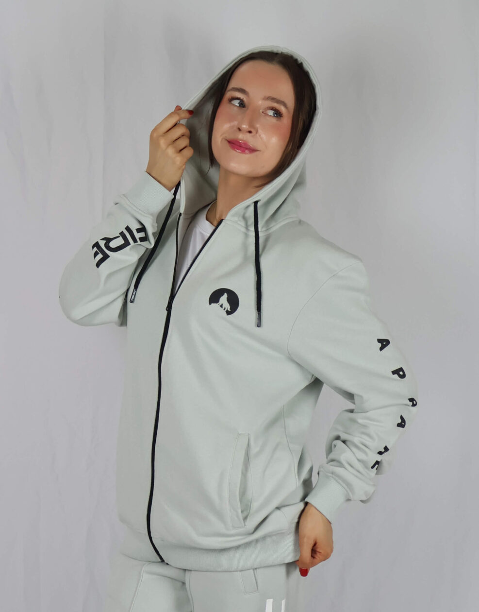 – Heat sealed Fire Wolf up the right arm with Apparel down the left arm”